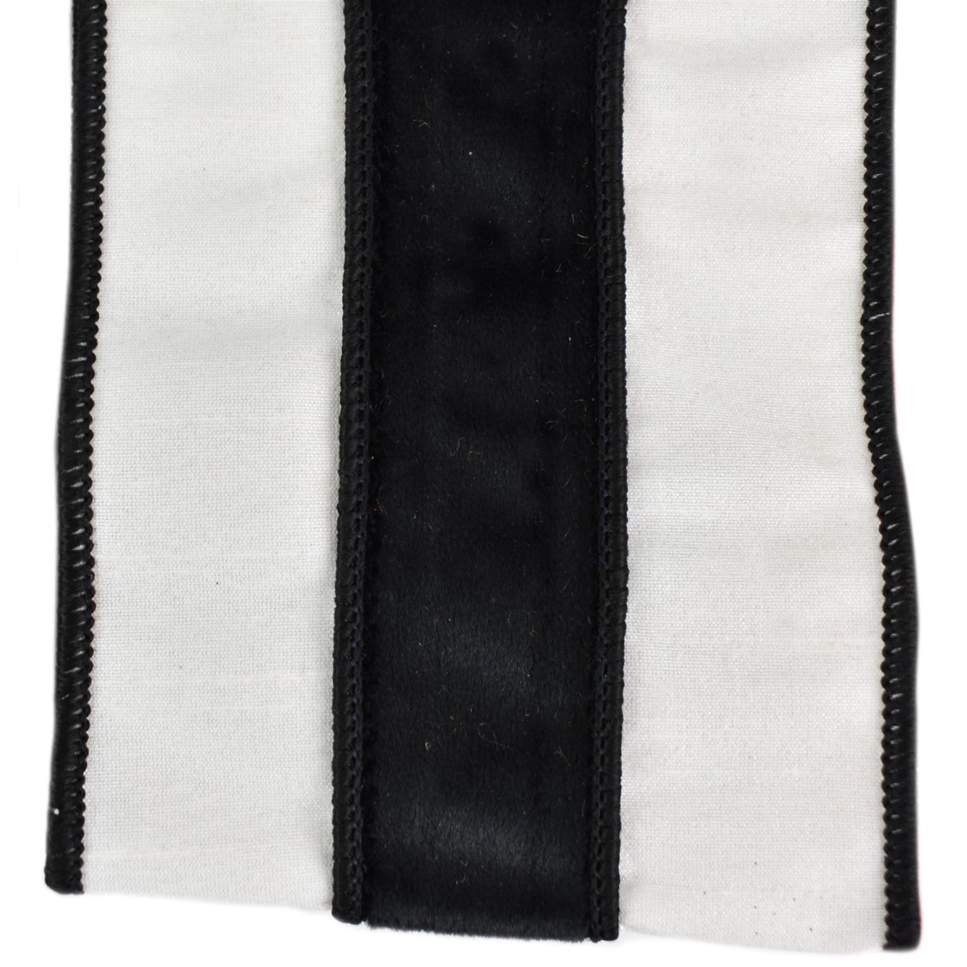 White Faux Dupioni Ribbon with Black Velvet Center Stripe 4" x 10yd