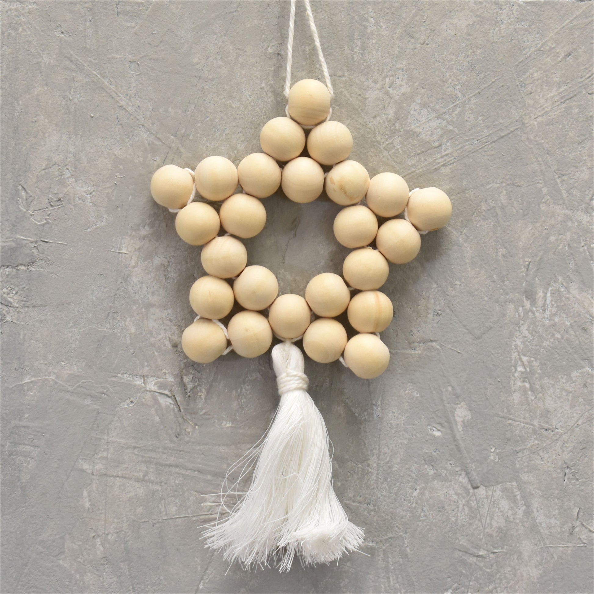 Wooden Bead Star Ornament Tassel 8.5" in Natural | BFC22