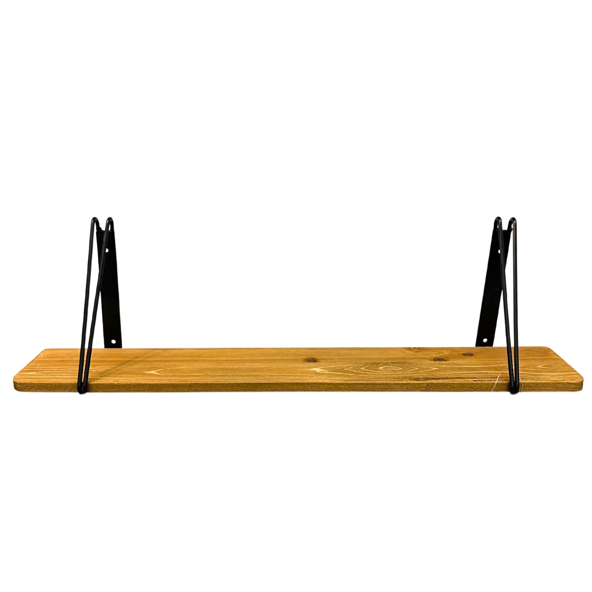 This sturdy wooden shelf is perfect for organizing any space. Handcrafted from natural wood, it features metal accents for an elegant modern look. Ideal for displaying photos and accents or storage, this shelf will bring lasting style to any room.
