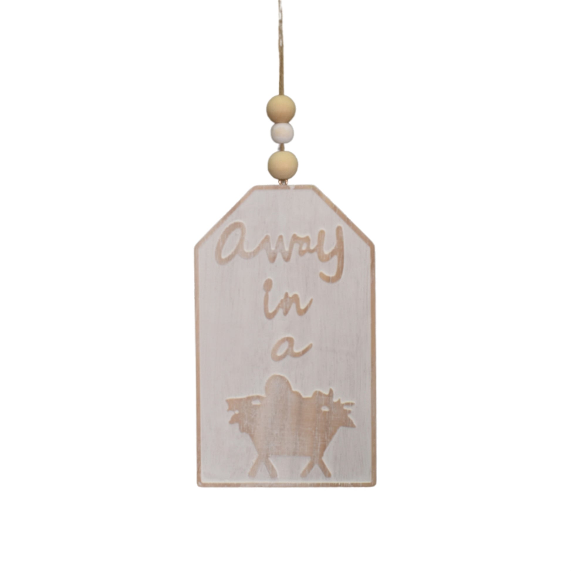 Wooden Whitewash "Away in a Manger" Tag Ornament 8" | TA